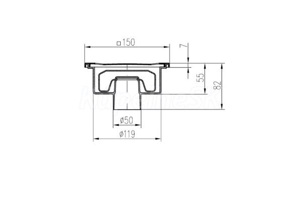 ENPRO Podlahový prívod dole NEPTUN D 50 / 55 mm, rám z nehrdzavejúcej ocele, mriežka SUN,