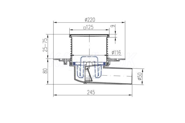 Prívod je určený na vnútorné aj vonkajšie použitie. Obsahuje suchú klapku a vodováhu. z PP, PS a nehrdzavejúcej ocele DIN 1.4301 Zaťaženie K 3 - 300 kg odolnosť do 90 °C použitie: kúpeľne, technické miestnosti, kuchyne, balkóny a terasy a
