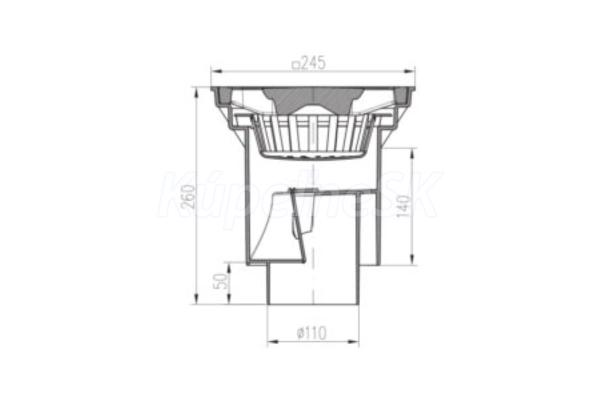 Kanalizačný prívod so suchou zápachovou klapkou je vhodný na vonkajšie použitie. prietok: 250 l/min. z UV stabilizovaného PP a PS a šedej liatiny DIN 1691 Zaťaženie podľa normy EN 124-B 125 (12 500 kg) odolnosť do 90 °C zámok: nie