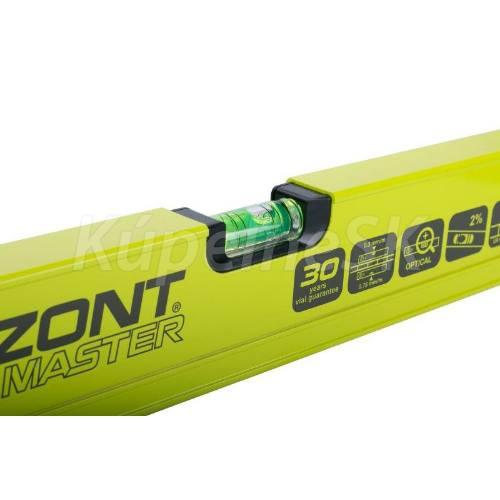 profesionálna séria vodováh HORIZONT MASTER Presnosť 0,3 mm/m = 0,017° (v základnej polohe) Horizontálna optická vodováha (zvyšuje presnosť merania) kvapalina v libele je UV stabilná a fluorescenčná dvojité krúžky v strmeni umožňujú nastaviť sklon špeciálny vystužený, pevný ALU profil 2,2 mm frézovaný základ každá vodováha HORIZONT MASTER je ELEKTRONICKY TESTOVANÁ
