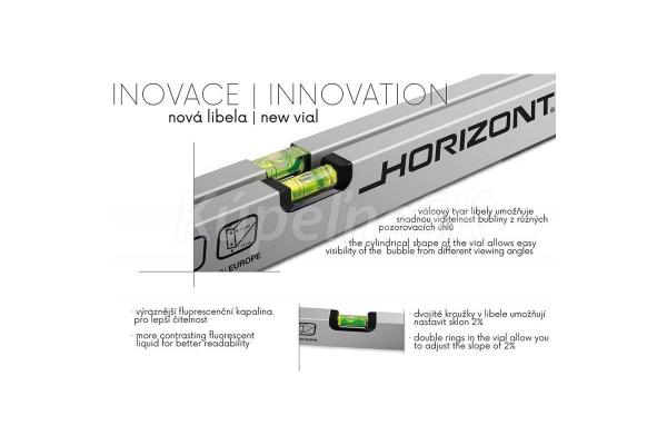 Presnosť 0,5 mm/m = 0,0285° Horizontálna optická vodováha (zvyšuje presnosť merania) kvapalina v libele je UV stabilizovaná a fluorescenčná 10-ročná záruka na vodováhu vodováha je odolná voči prevádzkovým otrasom povrch odolný voči oderu hrúbka steny