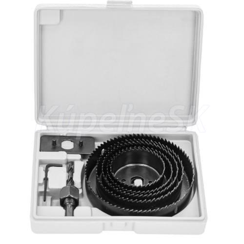 - Zloženie sady: O 64 mm (21"), 76 mm (3"), 89 mm (31"), 102 mm (4"), 127 mm (5"), 6 mm vodiaci vrták, adaptér, skrutkovač, šesťhranný kľúč