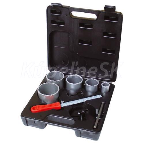 korunka - sada 8 kusov korunka s karbidovým hrotom na čisté a presné vŕtanie Priemery korunky: 33; 53; 67; 73; 83 mm univerzálny nosič ALU špeciálny vodiaci vrták súbor zabalené v plastovom puzdre