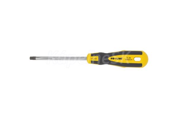 skrutkovač TORX kovová stopka z vysokokvalitnej ocele Cr-V-Mo, HRC 56±2 kalený hrot je magnetický dvojzložková rukoväť z tvrdého a mäkkého, protišmykového materiálu farebne odlíšená typ rukoväte: T30 dĺžka: 100 mm