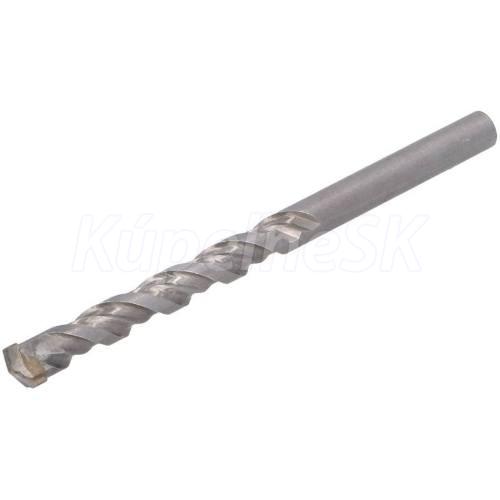 príklepová vŕtačka - valcová stopka obojstranné vrták s presne osadenou doštičkou zo spekaného karbidu (vysoká tvrdosť), spájkovanou pri 1000 °C pre lepšiu toleranciu vysokých teplôt pri vŕtaní špirála ideálneho tvaru na rýchle odstránenie