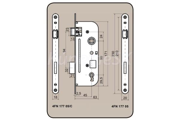 stavebný zámok V6090/45 bežný zámok bez prevodovky určený pre jednoduché a dvojité dvere vpravo alebo vľavo rozstup: 90 mm Hĺbka zásypu: 63 mm šírka čelnej strany: 20 mm Zadné osadenie: 45 mm povrchová úprava: biely zinok hmotnosť: 0,40 kg/ks nie sú určené pre požiarne/dymové dvere a únikové cesty