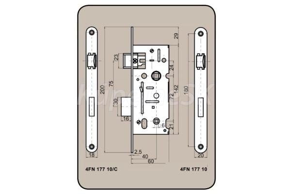 stavebný zámok V607 zámok bez prevodu, vhodný pre dvere, ktoré nemajú vysoké bezpečnostné požiadavky. Zámok sa ovláda pomocou matky zámku so štvorcovým otvorom 6 mm. Zámok je možné zmeniť na ľavý alebo pravý otočením šípky zámku o 180°. rozstup: 72 mm Hĺbka zásypu: 60 mm šírka čelnej strany: 18/20 mm zadné osadenie: 40 mm povrchová úprava: biely zinok hmotnosť: 0,35 kg/ks nie sú určené pre požiarne/dymové dvere a únikové cesty