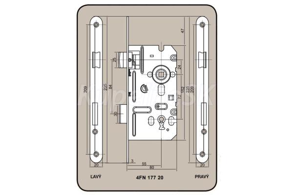 - zámek obyčejný (na klasický interiérový klíč) určený pro pravé (.1) a levé (.2) dveře