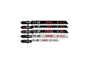 Typy listov: ST125SF Rýchly rez pre mäkké drevo - 2 ks ST136CF Zakrivený rezač drevotriesky - 2 ks ST125FH Rýchly rez na tvrdé drevo a laminát - 2 ks ST114SC Čistý rez pre drevotrieskové dosky - 2 ks ST113CC Čistý zakrivený rez na laminát - 2 ks