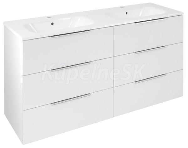 Sapho CIRASA umývadlová skrinka s dvojitým umývadlom 141x77x46cm, 3x zásuvka, biela lesk C