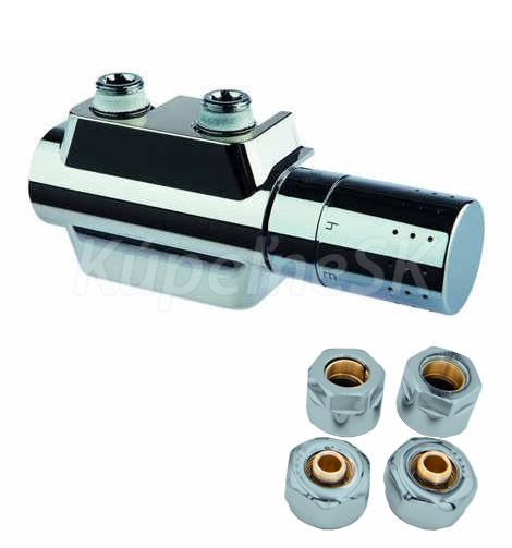 Pripojovacia armatúra UNI-SADA s integrovaným termostatickým ventilom pre vykurovacie telesá s vnútorným závitom 1/2" alebo s vonkajším závitom 3/4" Eurokonus. Je vhodná pre kúpeľňové a vykurovacie telesá so stredovým dopojením . Armatúra kombinuje rohový a priamy tvar ventilu a má univerzálne pravé alebo ľavé pripojenie hlavice . Sadu ponúkame v troch farbách (chróm, čierna a biela ). Ventily dodávame vrátane zverného šróbenia na Cu aj na PEX-AL-PEX.