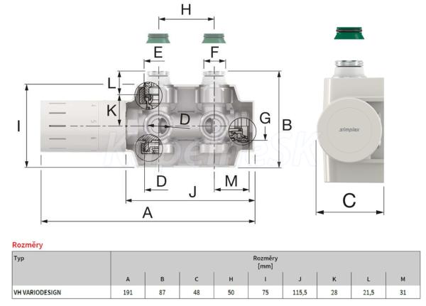 Ventil je určený na pripojenie radiátorov na rozvody TÚV s vývodom zo steny. Nie je možné kombinovať s elektrickou vykurovacou tyčou.