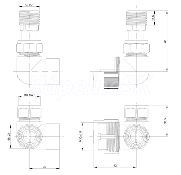 Ventil je určený na pripojenie radiátorov na rozvody TÚV s vývodom zo steny. Do ventilu nie je možné inštalovať elektrickú vykurovaciu tyč.