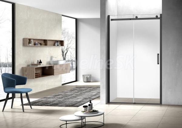 Luxusné sklenené posuvné dvere do niky. Plynulý a komfortný pohyb dverí zaisťujú horné masívne bezúdržbové ložiskové kolesá a spodný vodiaci diel. Vďaka absencii spodného vodiaceho profilu, vzniká ideálny bezbariérový vstup do sprchy. Tieto dvere sú vyrobené zo skiel o sile 8 mm. Dodáva sa v univerzálnom pravom aj ľavom prevedení.