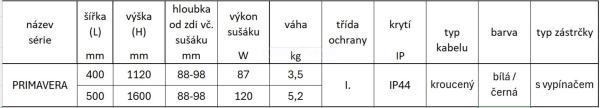 Instalprojekt Elektrický sušiak PRIMAVERA Farba radiátora - C34 biela matná, Rozmer radiát
