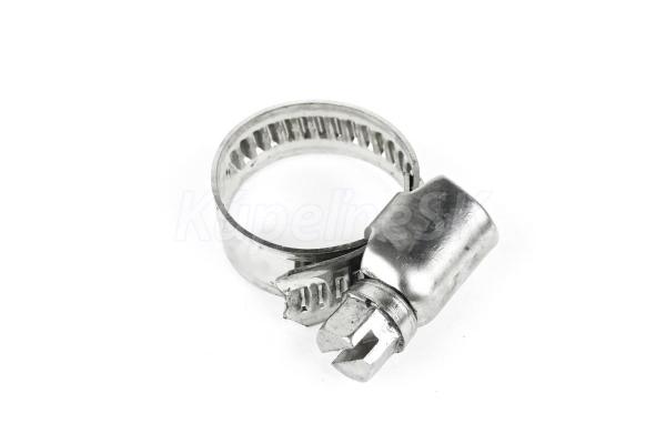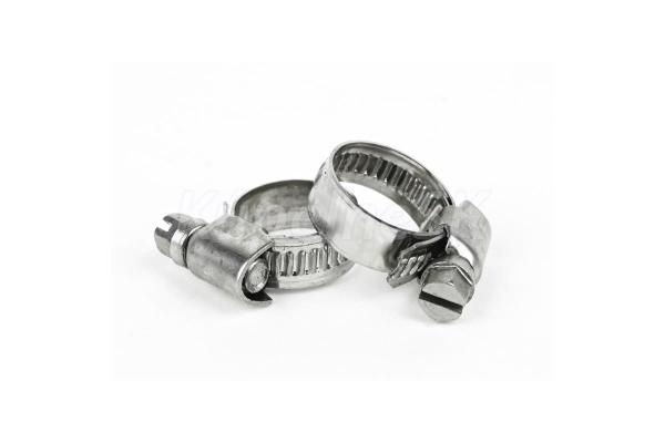 opatřena šroubem se šnekovitým závitem lisovaný pásek šíře 9 a 12 mm dle průměru spony se zaobleným okrajem pro větší bezpečnost při montáži, zvedlé okraje spony zajistí lepší ochranu hadice proti prodření vyrobena z kvalitní nerezové chromované oceli pře