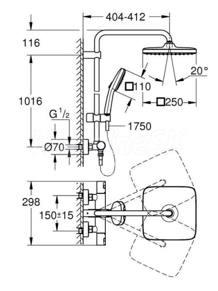 >>  Batérie vodovodné  >>  Sprchové príslušenstvo  >>  Hlavové sprchy  >>  Grohe Vitalio Comfort sprchový set s termostatom, 25x25 cm, 2 prúdy, chróm