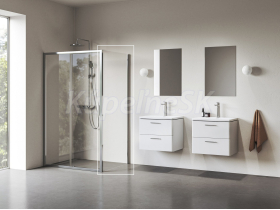 Jednodielna pevná stena Blix II vo vyhotovení lesklý chróm a s výplňou z číreho skla s ochrannou vrstvou Ravak AntiCalc. Otočiteľný výrobok pre ľavý aj pravý variant.