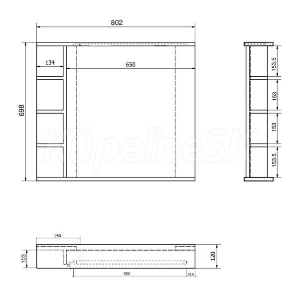 Aqualine KORIN STRIP zrkadlo s LED osvetlením a poličkami 80x70x12cm