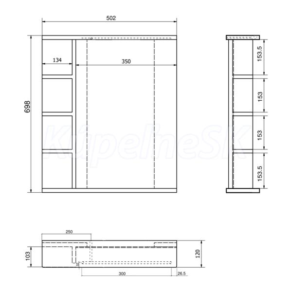 Aqualine KORIN STRIP zrkadlo s LED osvetlením a poličkami 52x70x12cm