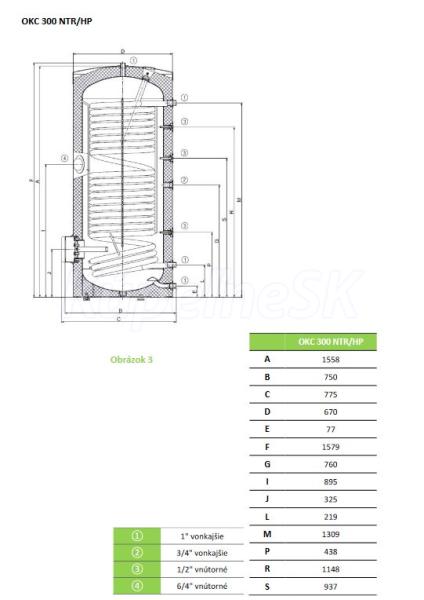 Dražice nepriamovýhrevný elektrický ohrievač vody stac. OKC 300 NTR/HP pre tepelné čerpadl