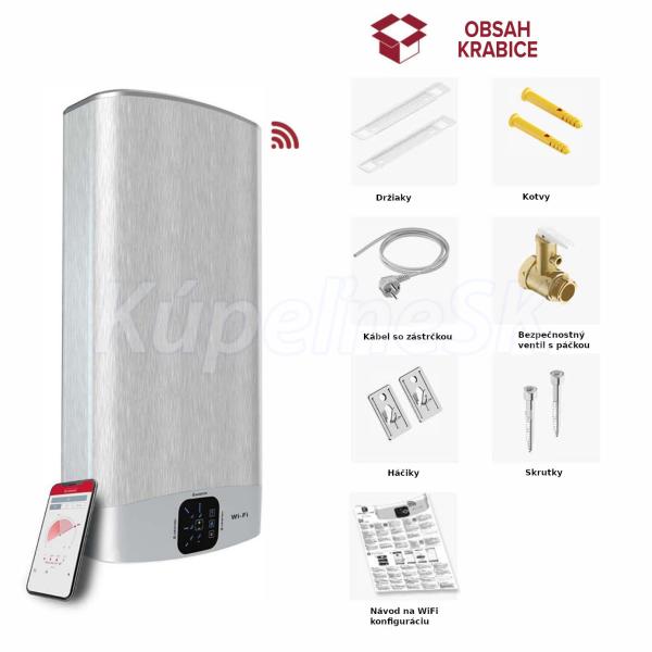 Ariston VELIS EVO WIFI 100 EU, kód 3626325, Ohrievače vody | Elektrické ohrievače vody | Ploché ohrievače vody | 100 litrov Stredný elektrický ohrievač vody s objemom 100 l. Kompaktný, plochý na vertikálnu aj horizontálnu inštaláciu. Plánovanie a ovládanie ohrevu prostredníctvom WiFi.