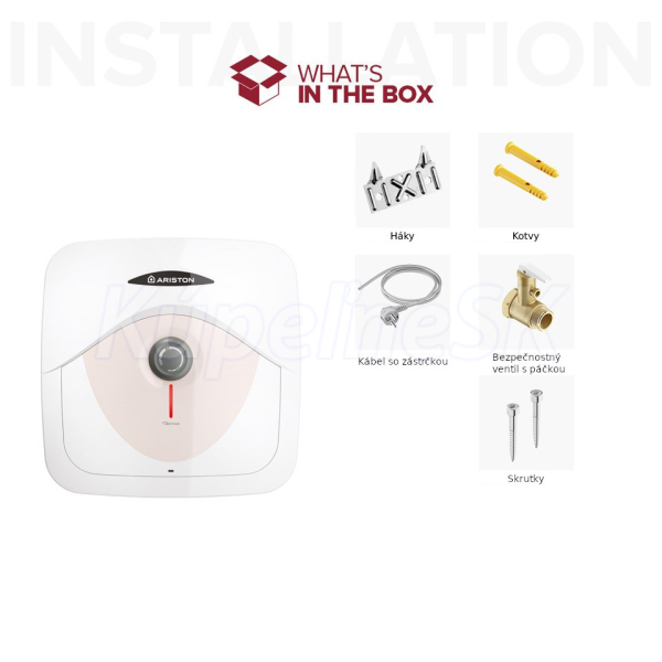 Ariston DUNE RS 15 1,5K PL EU, kód 3100854, Ohrievače vody | Elektrické ohrievače vody | Tlakové | 15 litrov Kotol - objem 15 l, výkon 1500 W, nad miestom použitia, medené vykurovacie teleso, rozmery 36 × 36 × 32,4 cm (V × Š × H), termostat, ochrana proti legionelám a ochrana proti zamrznutiu