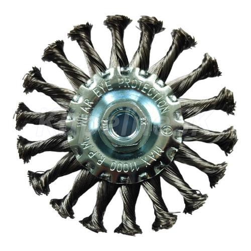 radiálna kefa ENPRO - kópia so závitom do uhlovej brúsky M14 x vhodný pre ťažké kefovacie práce, na odstraňovanie farieb, hrdze, otrepov a zvyškov po zváraní a iných nečistôt priemer drôtu: 0,5 mm