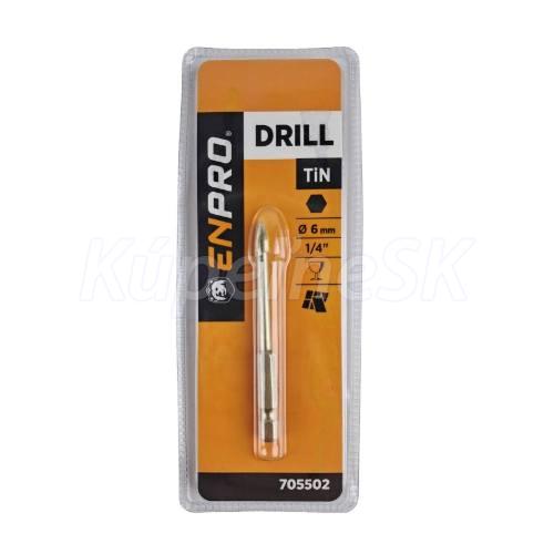 vrták na sklo a keramiku ENPRO 4-čepeľový s oceľovým telom a karbidovými doštičkami povrstvenými titánom stopka tvaru šesťuholníka použitie: na sklo a keramiku balenie: jeden kus v blistri