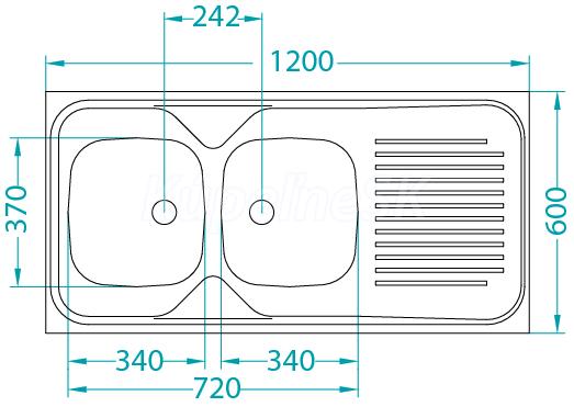 Váha: 5,79 Kg Nástavný dřez , dvě vaničky s odkapní plochou- vaničky vpravo