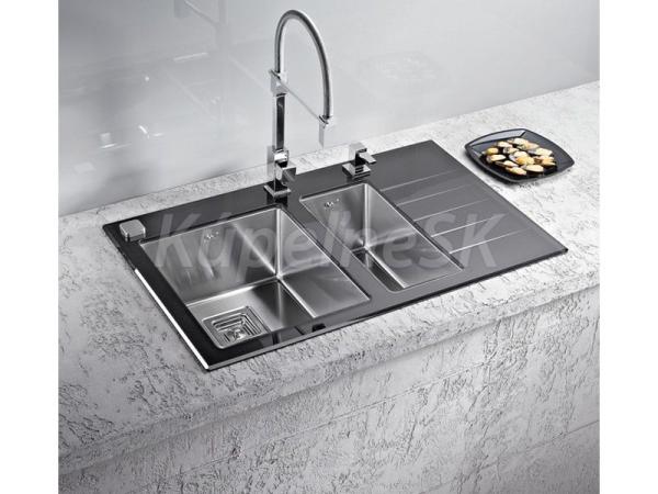 Alveus CRYSTALIX 20 vstavaný nerez/sklo drez 860x540x200 mm,vanička vľavo,Satin/Čierna