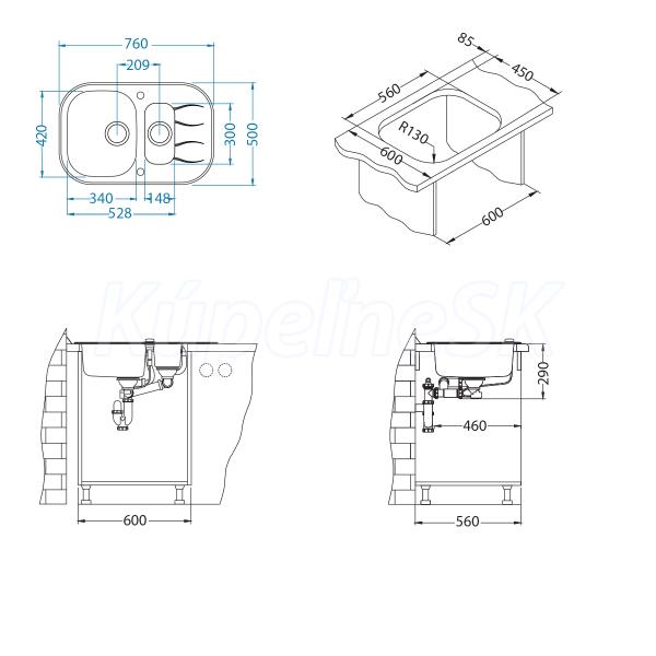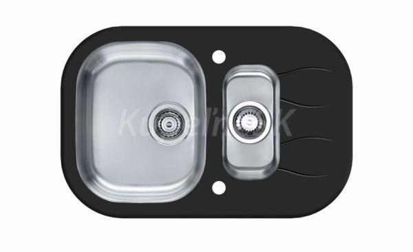 Alveus WAVE 30 Vstavaný nerez/sklo drez 760x500x175mm,2 vaničky, Satin/Čierna sifón Pop-up