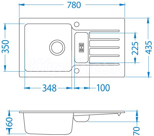 Alveus NIAGARA 70 G-11 vstavaný granit drez 780x435x160mm,odkvap plocha,Bielyasifón Pop-up