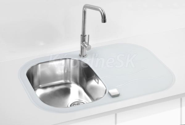 Alveus WAVE 20 F Vstavaný nerez/sklo drez 760x500x175 mm,odkvap. plocha,Satin/Biela sifón