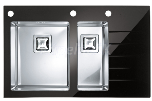 Alveus CRYSTALIX 20 vstavaný nerez/sklo drez 860x540x200 mm,vanička vpravo,Satin/Čierna