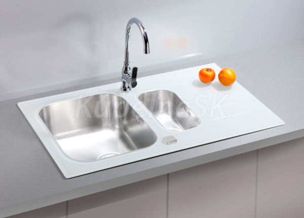 Alveus GLASSIX 20 vstavaný nerez/sklo drez 860x500x180 mm,1a1/5 vaničky,Satin/Biely a sif