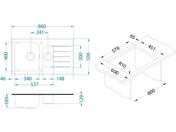 Inštalácia do skrinky so šírkou 600 mm Vestavěný dřez, univerzal,1 a 1/2 vaničky