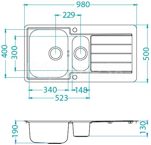 Alveus LINE 10 MAXIM F Vstavaný drez, UNIVERZÁL Prevedenie: SAT Vyrobené z nerezovej ocele CrNi 18/10 Vonkajší rozmer: 980x500 mm Rozmer vaničky: 340x420x160 mm Odtoková súprava s prepadom a 3 1/2 sitkom Úchyty a tesnenia na upevnenie drezu v balení Bez otvoru pre batériu Návod na inštaláciu v obrázkoch na obale Inštalácia do skrinky so šírkou 600 mm Vestavěný dřez, UNIVERZÁL Provedení : SAT Vyrobeno z nerezové oceli CrNi 18/10 Vnější rozměr: 980x500 mm Rozměr vaničky: 340x420x160 mm Odtoková souprava s přepadem a 3 1/2 sítkem Úchyty a těsnění pro upevnění dřezu v balení Bez otvoru pro baterii Návod pro instalaci v obrázcích na obale Instalace do skříňky o šířce 600 mm