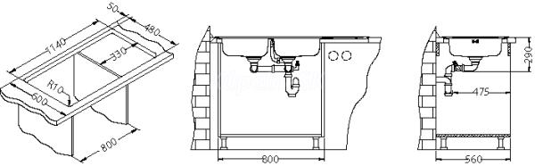 Inštalácia do skrinky so šírkou 800 mm Vestavěný dřez, UNIVERZÁL