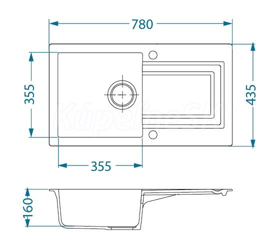 Alveus FALCON 30 G-91 vstavaný granit drez 780x435x160mm,odkvap plocha,Čiernyasifón Pop-up