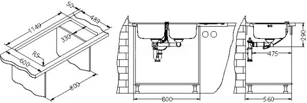 Inštalácia do skrinky so šírkou 800 mm Vestavěný dřez, UNIVERZÁL
