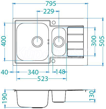 Alveus LINE 70 MAXIM FS Pne vstavaný drez, UNIVERZÁL Prevedenie: SAT Vyrobené z nerezovej ocele CrNi 18/10 Vonkajší rozmer: 790x500 mm Rozmer vaničky: 340x420x190 mm 148x300x 130 mm Odtoková súprava s prepadom a 3 1/2 sitkom Úchyty a tesnenia na upevnenie drezu v balení Bez otvoru pre batériu Návod na inštaláciu v obrázkoch na obale Inštalácia do skrinky so šírkou 600 mm Pně vestavěný dřez, UNIVERZÁL Provedení : SAT Vyrobeno z nerezové oceli CrNi 18/10 Vnější rozměr: 790x500 mm Rozměr vaničky: 340x420x190 mm 148x300x 130 mm Odtoková souprava s přepadem a 3 1/2 sítkem Úchyty a těsnění pro upevnění dřezu v balení Bez otvoru pro baterii Návod pro instalaci v obrázcích na obale Instalace do skříňky o šířce 600 mm