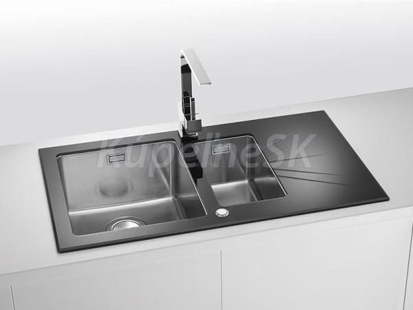 Alveus KARAT UP 20 Ľavý vstavan nerez/sklo drez 860x500x195mm,2 vaničky vľavo,Čiernyasifón