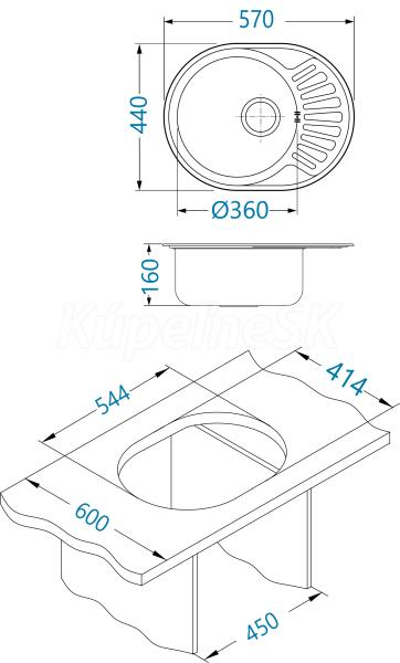 Alveus CIKLO 10 DEKOR 570x440x160 mm Vstavaný drez, univerzál. Prevedenie: DEK Vyrobené z nerezovej ocele CrNi 18/10 Rozmer: 570 x 440 mm Rozmer vaničky: priemer 360x 160 mm Odtoková súprava s prepadom a 3 1/2 sitkom Úchyty a tesnenia na upevnenie drezu v balení Bez otvoru pre batériu Návod na inštaláciu v obrázkoch na obale Inštalácia do skrinky so šírkou 450 mm Vestavěný dřez, univerzál. Provedení : DEK Vyrobeno z nerezové oceli CrNi 18/10 Rozměr: 570 x 440 mm Rozměr vaničky : průměr 360x 160 mm Odtoková souprava s přepadem a 3 1/2 sítkem Úchyty a těsnění pro upevnění dřezu v balení Bez otvoru pro baterii Návod pro instalaci v obrázcích na obale Instalace do skříňky o šířce 450 mm