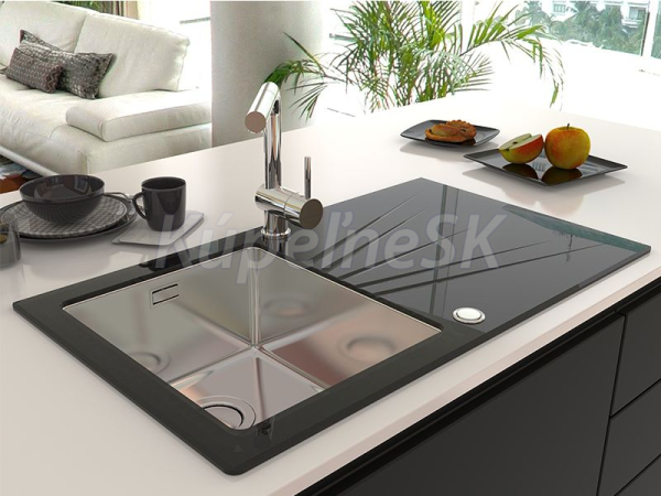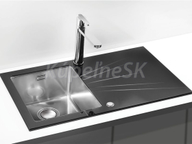 >>  KUCHYNE - Kuchynský tovar  >>  Kuchynské drezy  >>  Sklenené drezy  >>  Alveus KARAT UP 10 vstavaný nerez/sklo drez 860x500x195 mm,Čiernyasifón Push Pop-up Ľavý