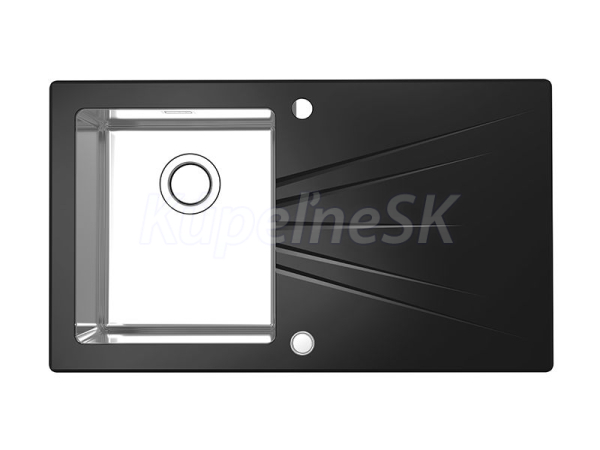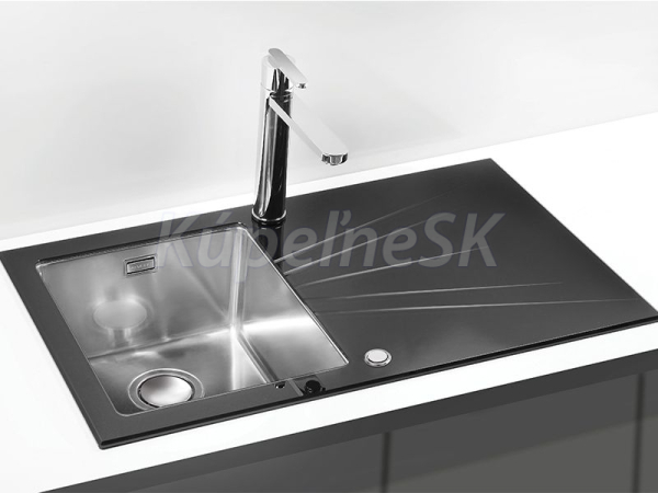 Alveus KARAT UP 10 vstavaný nerez/sklo drez 860x500x195 mm,Čiernyasifón Push Pop-up Ľavý