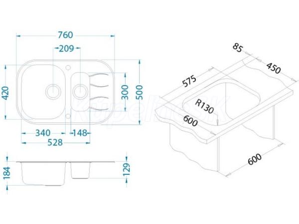 Alveus Wave UP 30 vstavaný nerez/sklo drez 760x500x175 mm,univerzálny,Bielyasifón