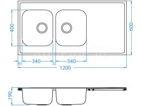 Alveus CLASSIC PRO 100 vstavaný nerez drez 1200x600x190 mm,2 vaničky,odkvap. plocha+sifón