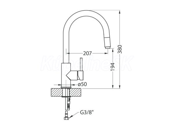 Alveus BATERIE DELOS - chrom Vysokotlaká baterie otočné ramínko vytahovací koncovka rozměr:207 x 380 mm provedení: chrom Váha: 2,64 Kg