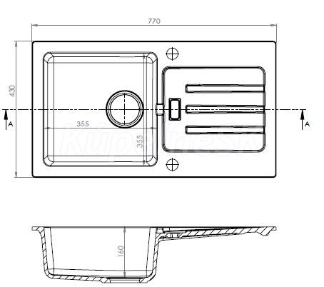 Provedení : granitový dřez s odkapní plochou